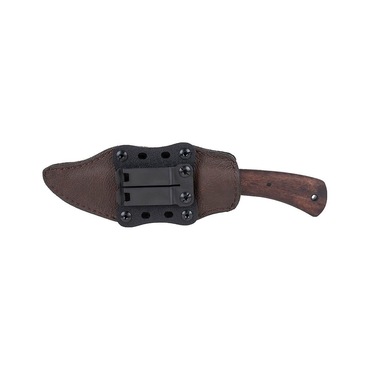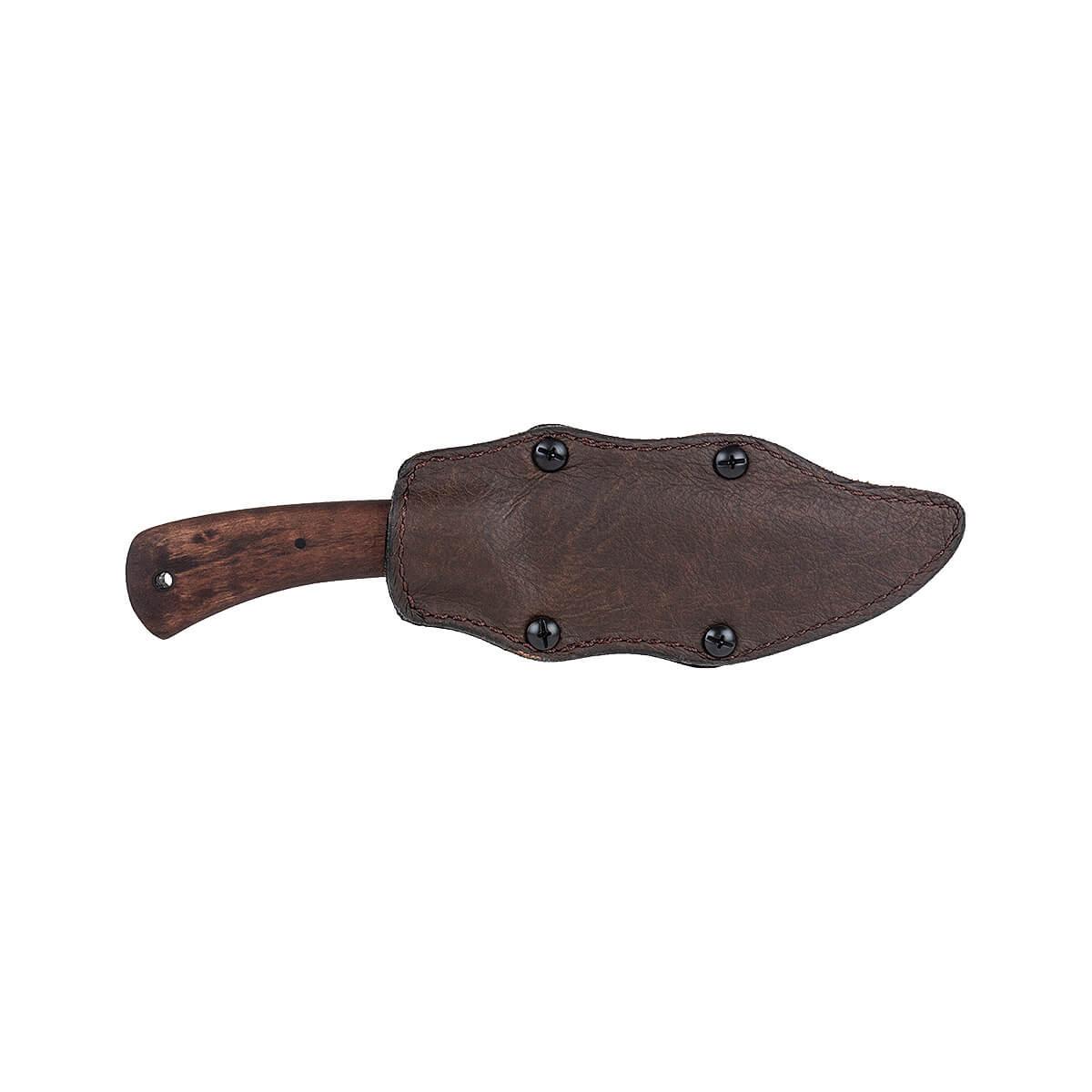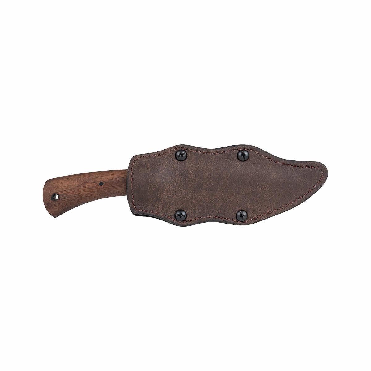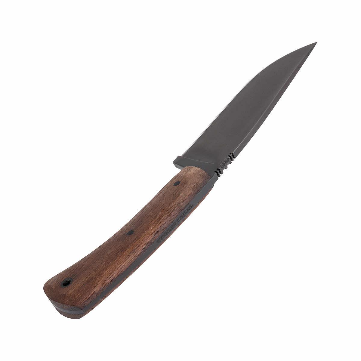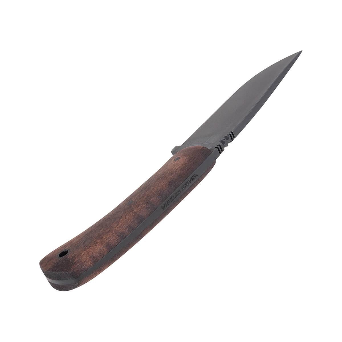 The Winkler Knives Highland Hunter knife is a rendition of a Daniel Winkler's hand forged original, crafted with high-quality materials for exceptional performance in the field. This knife features a 4 3/4-inch blade made from 80CrV2 Black oxide no-glare finish blade steel, ensuring strength, durability, and corrosion resistance. The comfortable handle provides a secure grip, while the lined Boltaron® sheath with a leather cover offers secure and convenient carrying. With its overall length of 9 1/4 inches, the Winkler Highland Hunter is a versatile knife that can tackle a variety of cutting tasks.