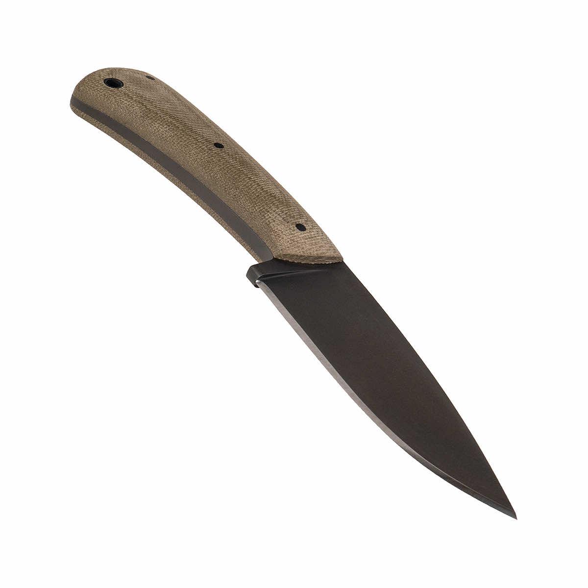 The Green Canvas WK Forest Edge knife, a pinnacle of bushcraft and survival tools, boasts a robust 3.75-inch 80CrV2 high-carbon steel blade, ensuring exceptional edge retention and the ability to handle demanding tasks like batoning, chopping, and carving. This knife is crafted with versatility to work as hard as you do any place at any time. The skeletonized, full-tang blade is constructed from 80CrV2 steel with a black oxide, no-glare finish. The handle is made from green canvas laminate to provide a sleek, smooth, and secure grip. This knife comes with a lined Boltron leather sheath to keep you, your knife, and other gear protected. The WK Forest Edge Knife is forged tough and has a backbone of rugged dependability!