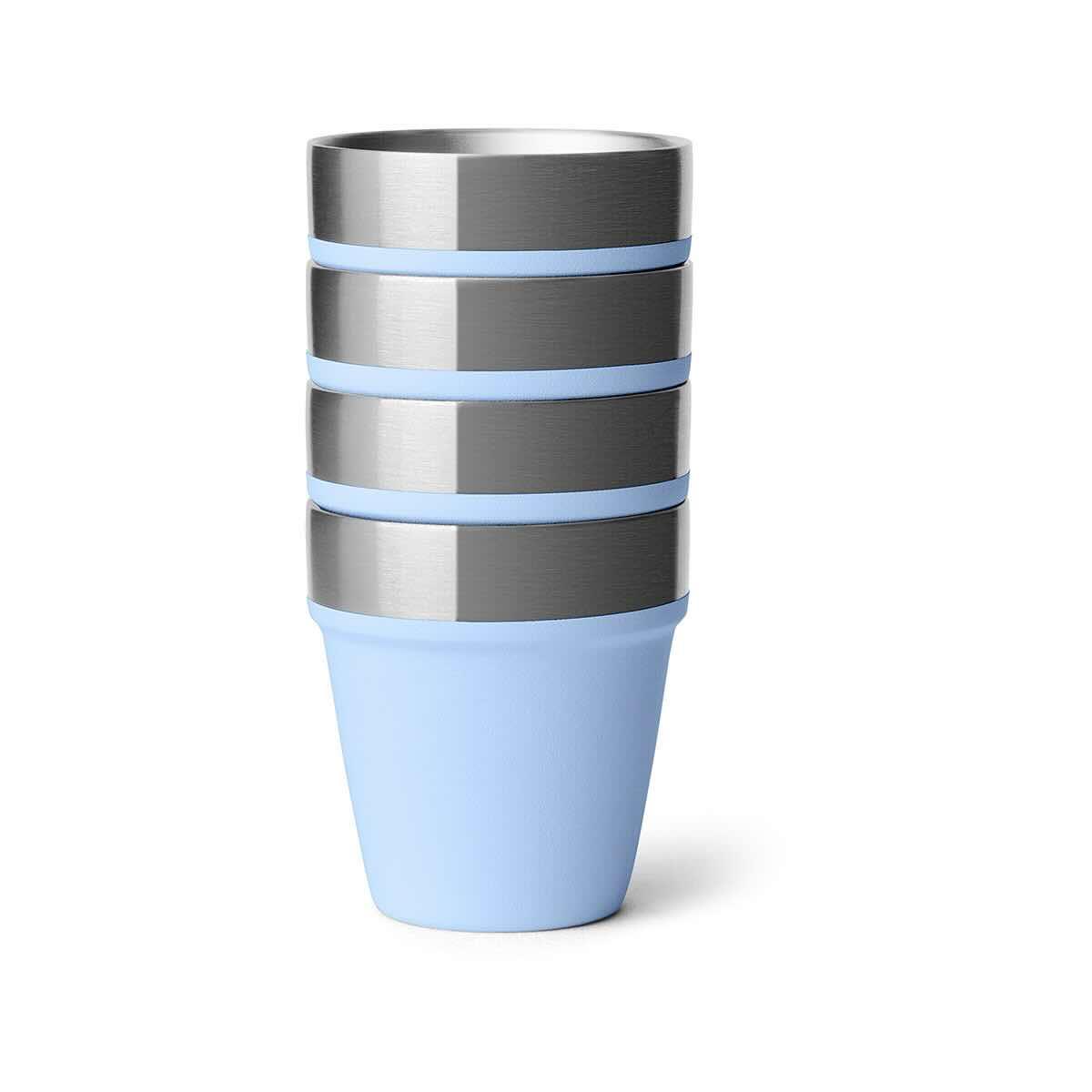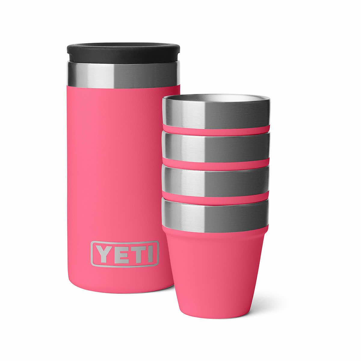 Clock out and kick back with the Shot Glasses from YETI! Enjoy your preferred beverage in a shot glass that looks as good as your drink tastes. Made from 18/8 kitchen-grade stainless steel, each glass is double-wall insulated and dishwasher to keep it sturdy and easy to clean. The stack-and-pack design fits all 4 shot glasses into a fitted carrying container which is great for taking the top shelf to the campsite, surf shack, cabin, or creek bank. As YETI likes to say: Stack, pack, and knock one back with the Shot Glasses!